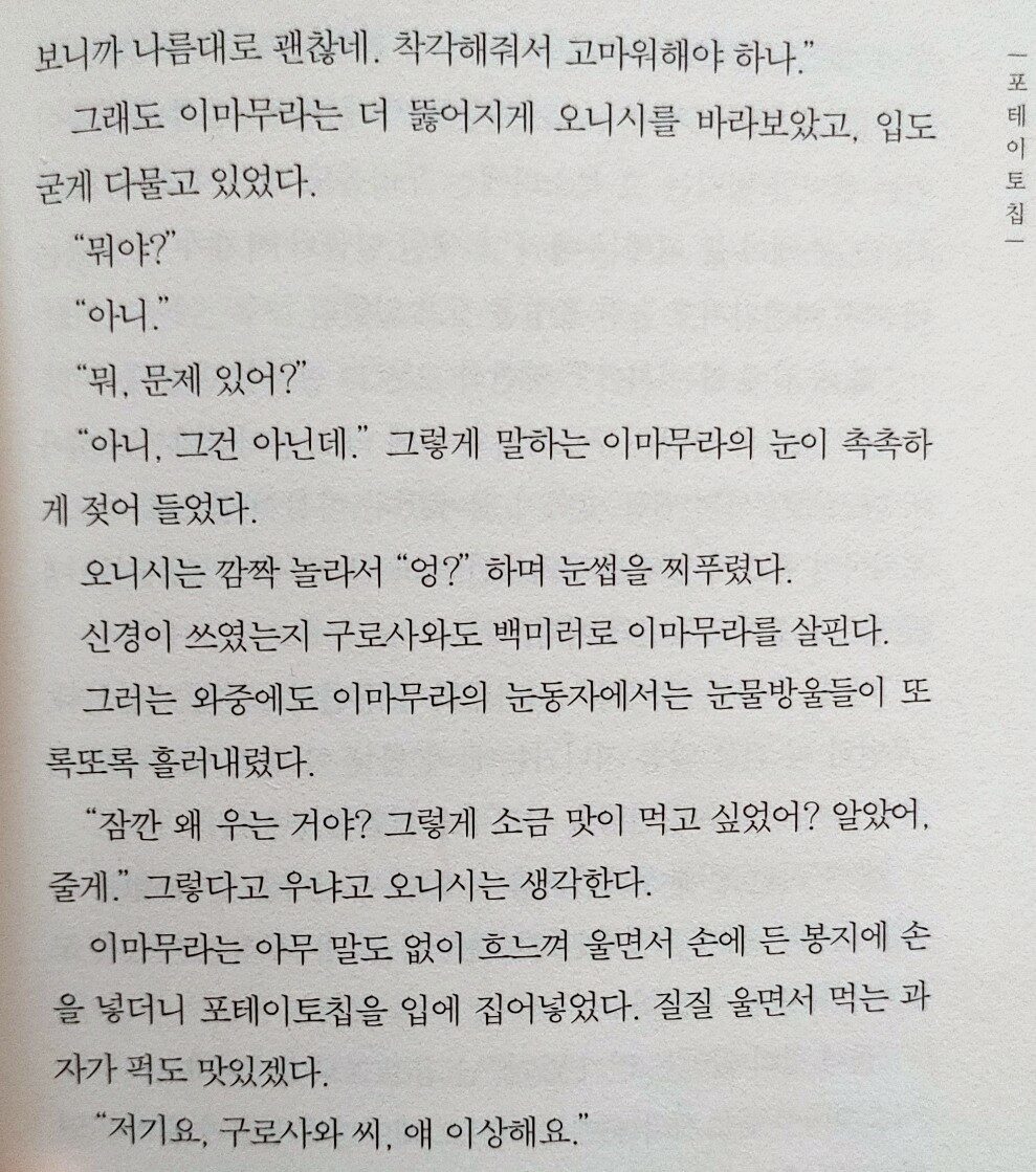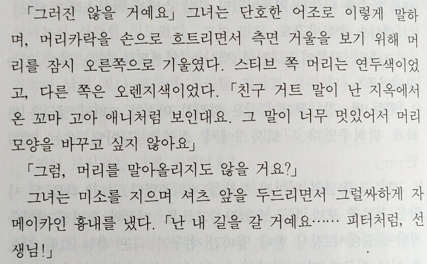 글의 초반부에 등장인물을 소개한다고 주절주절 말이 많다. 본격적인 스토리 전개를 기대하는 사람들은 다소 답답할 수도 있겠다는 느낌이 들었다.