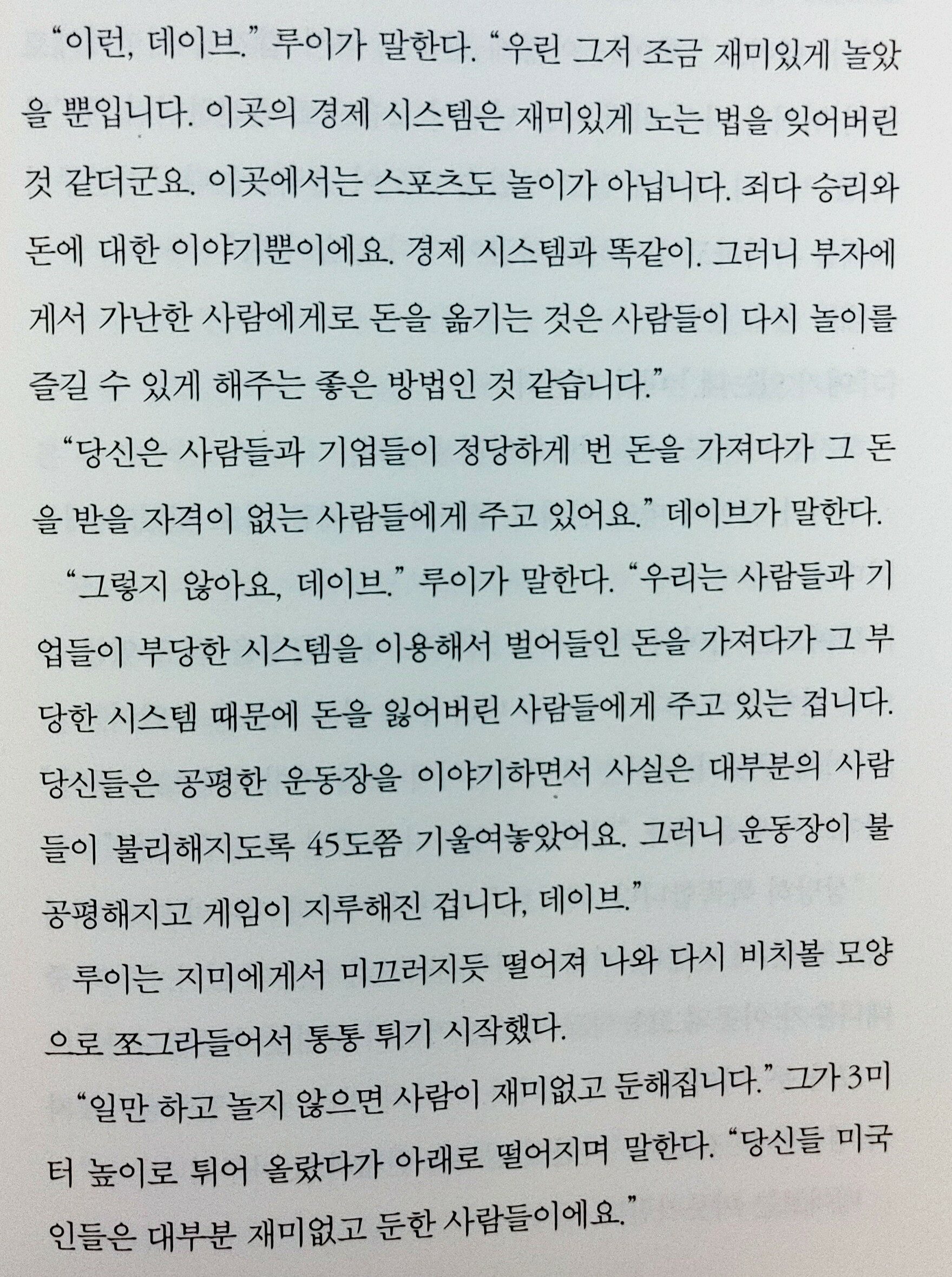 글 자체에 유머가 베이스로 깔려있어서 글을 읽는 재미는 있지만, 책의 중반 즈음부터 이야기가 다소 루즈해진다.