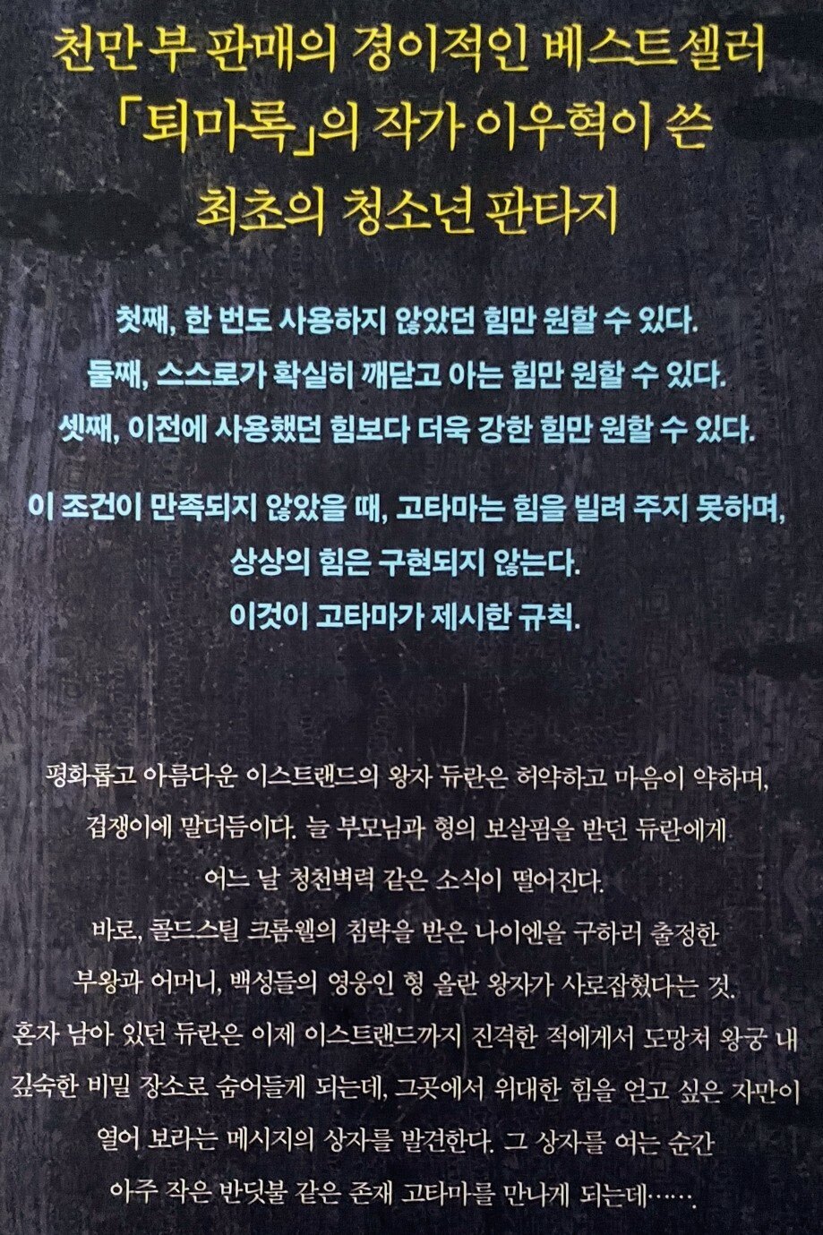 이우혁 작가가 쓴 청소년을 위한 판타지 소설로, 주인공인 듀란이 14살이라서 청소년들 입장에서는 좀 더 감정이입하여 읽기 쉬울 것이다. 구성과 글도 단순한 편으로 술술 읽을 수 있다. 나름의 판타지적 세계관과 액션도 나쁘지 않다.