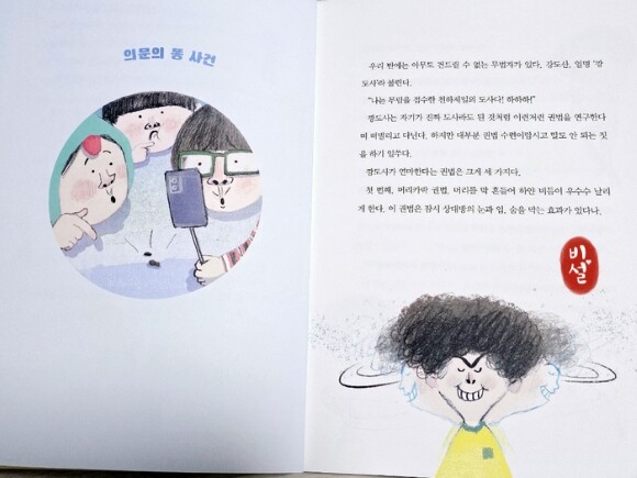 또 어느 날은 반에서 비듬과 방귀 대장인 '깡도사'와 관련된 일이 생겼답니다. 교실에 똥 덩어리가 떨어져 있던데요. 이를 보게 된 초튜버는 유튜버 촬영 주제로 좋은 걸 발견했다고 열심히 촬영하면서 이 똥의 주인을 확인도 하지 않고 '깡도사'라고 의심을 하네요.
