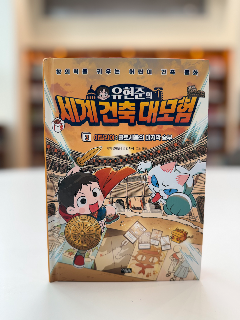 그런 우리 가족에게 반가운 책이 출간되었다. 바로 유현준의 세계 건축 대모험 시리즈다. 그리고 이번에 건축가 유현준과 함께 세계의 명소를 여행하는 어린이 건축 동화 시리즈 3권, 《유현준의 세계 건축 대모험 3: 이탈리아 – 콜로세움의 마지막 승부》이 출간되었다. 이번 편의 무대는 이탈리아 로마의 콜로세움이다.
