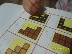 가려진 부분을 먼저 알아보았고 이제 잘라낸 초콜릿의 갯수를 찾는거에요..