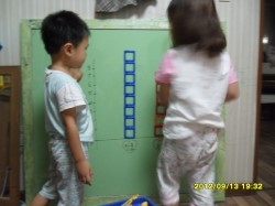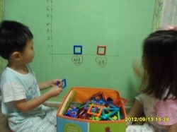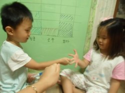 가로에는 두 아이의 이름,세로에는 숫자를 적었어요,