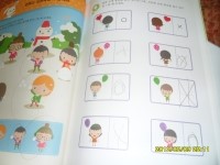 아이가 쉽고 재밌어한부분은 <위에서본모양찾기>와<관계없는것찾기>였어요