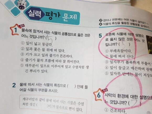 물속에 사는 식물의 경우에는 배웠던 경험이 많이 부족해서 그런것 같아요