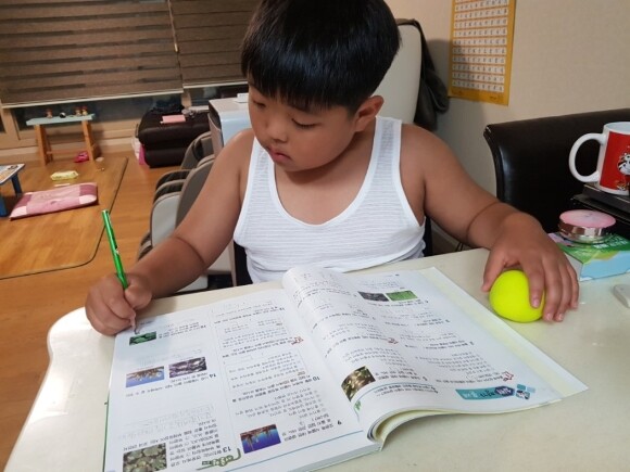 곧있음 개학이라서 열심히 책보고 있는 아이