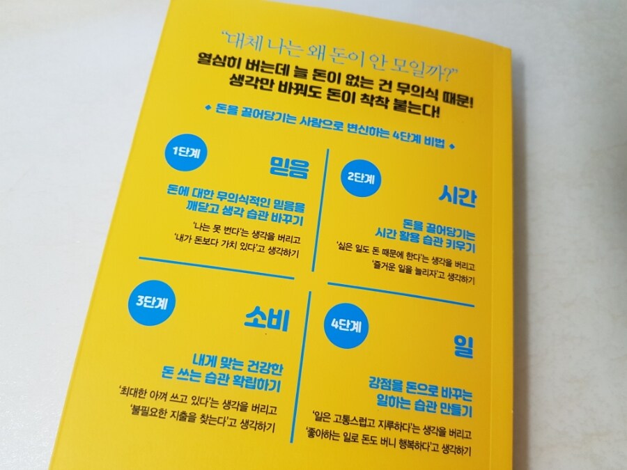 저자는 4단계 방식으로 돈을 끌어당길 수있다고 비법을 알려줍니다.