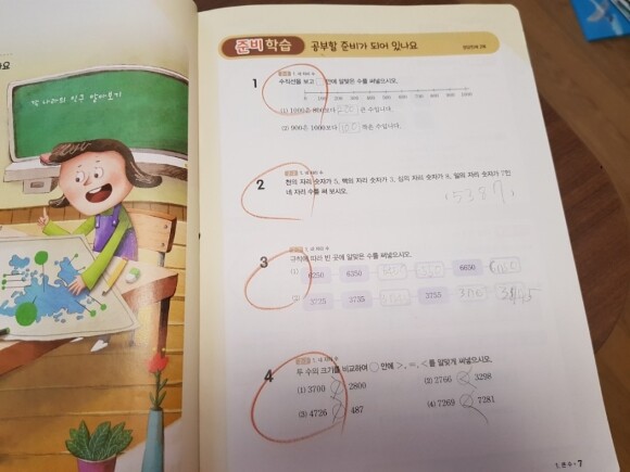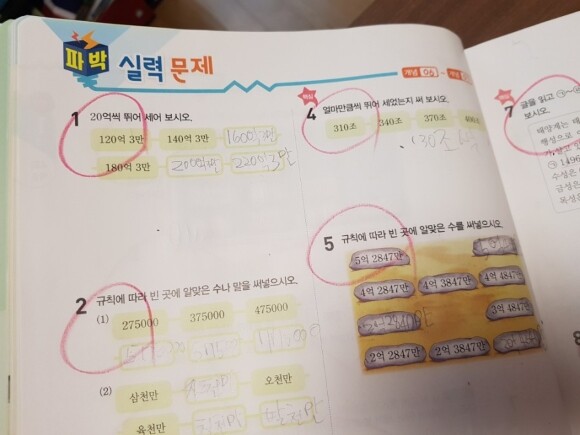초등수학문제집으로 해결의 법칙을 이용, 그중에서 유형 해결의 법칙을 풀고 있는데