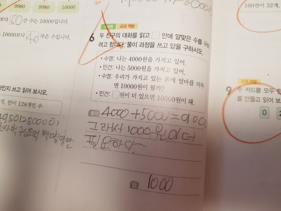 9900억보다 1000억 큰수라고 써서 틀렸어요