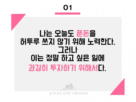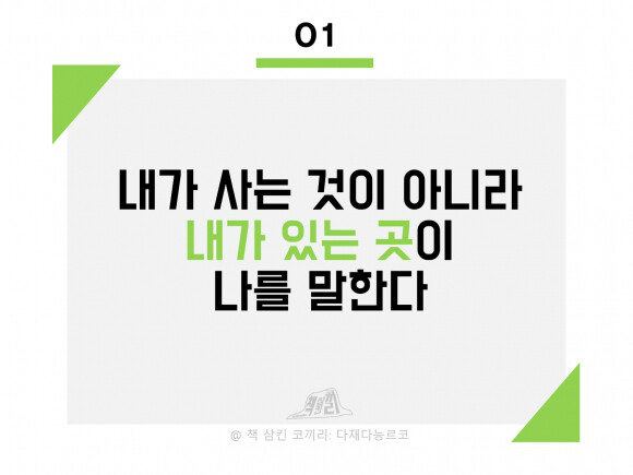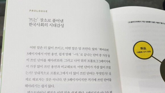 하나의 트렌드를 설명해주고 앞으로의 방향들에 대해서도 시사하고 있어서 생각해볼만한 일들이 많았다. 나 또한 영업과 강의라는 트렌드에 민감한 직업에 종사를 하고 있기에 미래의 방향성과 시사점들을 눈여겨 보게되었다. 4인가족이 1인포장을 4개 해갈 수 있는 시대에 직면한 대한민국이라니, 4인 가족의 프레임을 버리라는 말이 확 와닿았다. 어쩌면 이런 시점에 와서 사람들이 더 돈이 없는지도 모르겠다라는 생각도 했다. 4인이 살때 생활비가 더 드는 것 같아보여도 실제로는 혼자살 때 모든 것을 다 사야하는 상황이 더 많이 들때도 꽤 많고 사둔 음식이나 식재료를 다 소비하지 못하는 상황을 생각한다면 그 프레임들도 이제는 과거의 생활방식이 아닌가라고 생각이 들기도 했다. 다양한 주제들의 트렌드를 보다보면 시간가는 줄 모른다. 여러가지 응용면면에서 생각이 된다. 급식을 먹는 10대들이 주로 사용한다고 해서 나온 '급식체'를 처음 들었을 때 무슨 말인지 모르다가도 금새 트렌드를 생각하면서 두고보니 이런생각도 하게된다. '논리나 이론으로는 생각을 따라가기 힘들어했던 10대들이 오히려 언어유희라는 부분으로 논리나 이론, 근거보다 더 우위에 서게 된게 아닐까'라는. '오지구요 지리구요, 인정 어 인정?, 동의 어? 보감 등을 보다보면 어린나이에 쓰는 장난처럼도 들리겠지만 10대 특유의 감성이 사용되었다라는 느낌이 들기도 하는 것처럼.