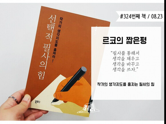 필사에 대한 이야기들을 통해서 생각해보고 싶은 것들이 있는 분들이라면 읽어보시면 필사의 장점, 필사의 효과등을 다양하게 볼 수 있습니다.