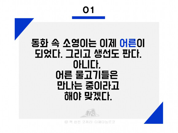 정말 어느 누구에게나 권해드립니다. 엄마와 딸의 마음을 볼 수도 있고, 30년간 동네를 지켜온 생선가게의 비하인드도 있고, 그리고 그안에 오래된 것을 지켜가고 싶은 청년들의 마음까지도 가득 담겨 있습니다. 그래서 꼭 읽어보실 수 있다면 읽어보실 수 있기를 권합니다.