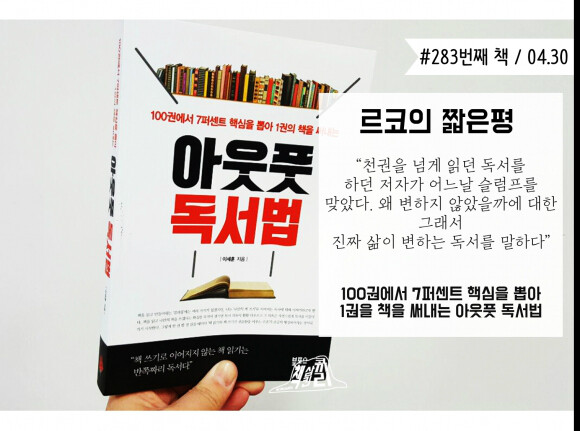 책에 관한 여러가지 이야기를 던져주고, 정말 100권의 책을 읽고 7퍼센트의 핵심을 뽑아내라고 한 표지의 내용처럼 작가의 책이 정말 그렇게 구성되어있다고 느껴졌다. 다양한 책과 그 책속의 문구들을 보면서, 한권을 책을 쓰기위해서 작가들이 최소 60-70권의 책을 읽고 쓴다고 했는데 - 딱 그 말이 가장 어울리는 책이였다. 또한 책은 사람들이 독서에 관해 가질만한 많은 '고정관념'들 때문에 어려워하지 말라고 이야기한다. 또한 어떻게 핵심을 뽑아서 책을 쓰게 되었는지에 대한 과정도 담고 있으므로 독서와 책쓰기에 관심있는 분들이라면 한번쯤 읽으면서 스스로의 독서에 관한 생각을 돌아보면 좋을 것 같다. 사실 내가 생각하기에 독서는 정답이 정해져있지는 않은 것 같다. 그렇게 말하지 않는가 - 책을 읽는 사람이 성공하는 것은 아니지만, 성공한 사람들은 다 책을 읽는다고, 어떻게 읽어가는 것이 중요한 것이라는 것을 말하는 문장이라고 생각한다. 읽는 것만큼 마음도, 행동도 분명해져야하기에 독서라는 것이 정말 읽는 것만으로는 끝나서는 안된다는 부분에 공감한다.