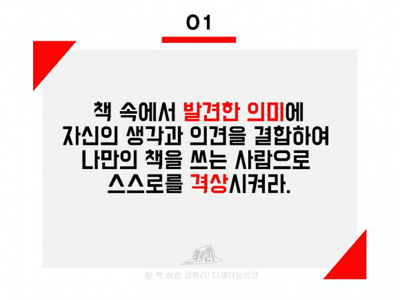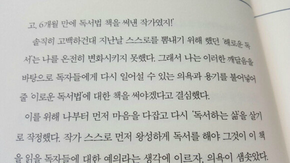 독서에 관한 고정관념이 있는 분들이 읽어보신다면, 어느정도 고정관념을 깰 수 있는 부분들이 분명 생겨날 것 같고 작가처럼 책을 읽는데 변화가 없다고 느껴지는 분들이 읽는다면 많은 생각들을 얻을 수 있을 것 같습니다. 독서법에는 정답이 있는 것은 아니지만 또다른 참고가 될 수 있을 것 같습니다.