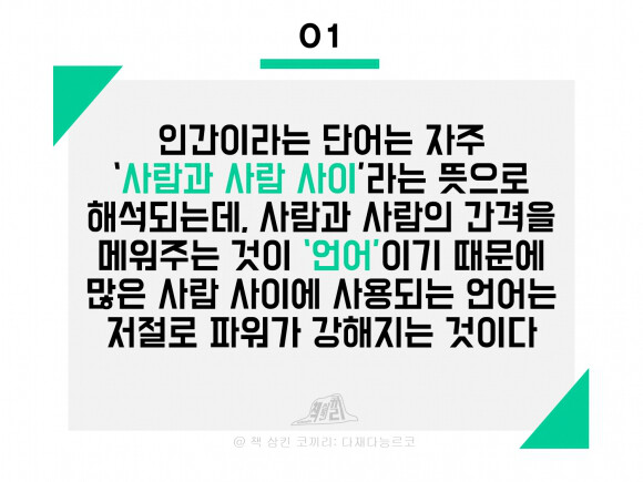 저자인 '조승연'씨의 공부기술을 읽으면서 꽤나 공부를 잘하고 싶어져서 노력했던 기억이 난다. 그 저자의 모습이 어린 시절 나에게는 꽤나 '똑똑하다, 대단하다'로 와닿았 던 것 같다. 다양한 언어를 독학으로 하면서도 외국인들이 느끼기에도 유창함이 드러나는 그의 모습에 부럽다고 느끼던 그 때, 이 책을 보게 되니 어서 읽어보고 싶다는 생각이 가득했던 것 같다. 말하는 능력을 배운 다는 것은 인간다움의 최고 경지에 이를 수 있는 진짜 멋진 일임을 이야기하며 단순히 그간 우리가 제대로 인식하지 못하면서 살아왔음을 시사한다. 그는 언어를 단순히 문법이나 발음을 공부해서 늘어나는 것이 아님을 이야기하면서 영어적 머리를 갖기를 이야기한다. 그러면서 영어가 가진 비밀들을 풀어감으로써 읽는 이로 하여금 영어의 WHY를 배우고 어떤 HOW든 이겨내기를 권한다. 단어나 문맥의 비밀까지 하나하나 이야기하면서 그간 우리가 영어를 할 수 없었던 이유를 알려주고 앞으로는 이렇게 해보라고, 이렇게 생각해보라고 권한다. 정말 말그대로 '언어'를 배우는 방법을 하나하나 이야기한다. 그간 가진 고정관념들 혹은 습관들이 얼마나 많이 언어를 익히는데에 있어서 방해를 해왔는지에 대해서 근거를 말하면서 우리에게 '영어'를 권한다. 단순히 스펙으로서의 언어가 아니라 배움과 학습, 그리고 정보를 얻는 부분에 있어서 필요한 언어의 의미를 다시금 알게한다.