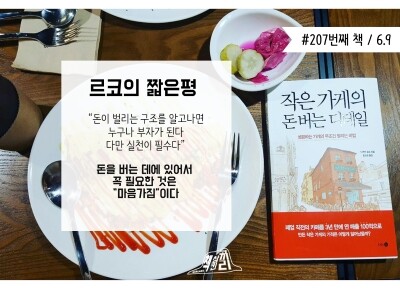 현재 대한민국은 창업률 최고치라고 할 정도로 '카페/치킨집/스타트업 등' 다양한 기업들이 새롭게 문을 열고, 또 닫는다. 5년이란 시간동안 살아남는 기업이 10%라고 할 정도로 폐업률도 높다. 남들 다하는 '카페'를 하면서도 성공을 하는 사람들도 있지만, 남들 다하는 '카페'를 하다가 고스란히 망하는 경우도 많다. 같은 프렌차이즈점도 어딘가는 수익을 내지 못하고 어딘가는 또 잘된다. 단순히 위치의 차이라고 하기에는 어렵지 않을까 생각을 해본적은 있었지만, 이렇게 하나하나 디테일하게 잡아주니 한번더 생각하게 되었다. 자신의 삶을 위해서 가게를 연 많은 사람들이 '되겠지'라고 생각하는 부분보다 더욱 치열하게 살아야 됨을 알려주고 있다라는 생각이 들었다. 등장인물의 가게의 문제점을 하나하나 보여주고 개선점이 진행되는 과정을 보니 조금더 이해가 쉽게 써있다.