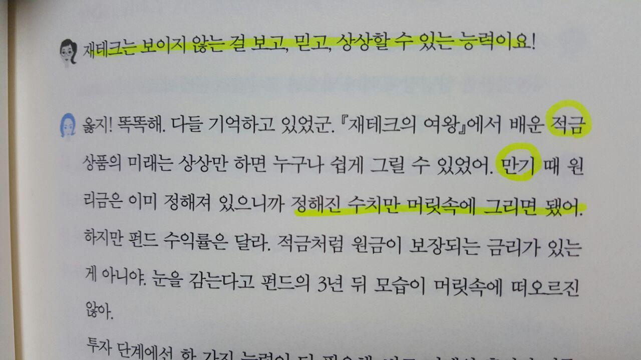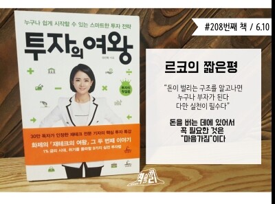 다른 책들처럼 하나하나 통장을 쪼개세요, 신용카드를 없애세요, 라는 의지와 절약의 재테크를 말하는 것이 아니다. 제목처럼 '투자'의 여왕으로 거듭날 수 있도록 하나하나를 배우자라고 이야기한다. 9가지의 챕터로 나누어서 각각 재테크 할 수 있는 여러가지 투자 재테크를 소개한다. 물론 알뜰재테크를 먼저 몸에 익힌 사람들이 투자재테크를 한다면 더욱 나을 것이다. 허나 더이상 예금/적금으로 돈을 불리는 시대는 지났다. 이제는 우리가 가진 '시간'으로 공부하고, 시대의 흐름들을 보고, 그로인해 시간에 편승한 돈이 돈을 불러와야하고, 돈이 돈을 벌어와야한다. 그러기위해서 우리에게 필요한 것은 "투자"이다. 재테크 투자에 대한 편견이 있던 사람들이라면 한번쯤을 읽고 생각을 열어보기를 권한다. 돈 공부는 누군가가 떠먹여주는 것이 아니고 스스로 해야한다. 더이상은 누군가의 추천에만 의지할 수는 없다.