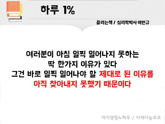 그건 바로 일찍 일어나야 할 제대로 된 이유를 아직 찾아내지 못했기 때문이다.