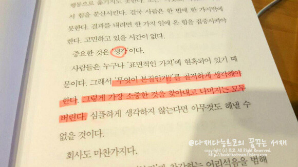 있었다면 그냥 광수생각같을 지도 모르겠지만, 이 책은 형광펜도 볼펜도 자유롭게 쓰면서 스스로의 책을 만들어보라고