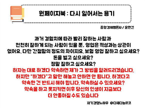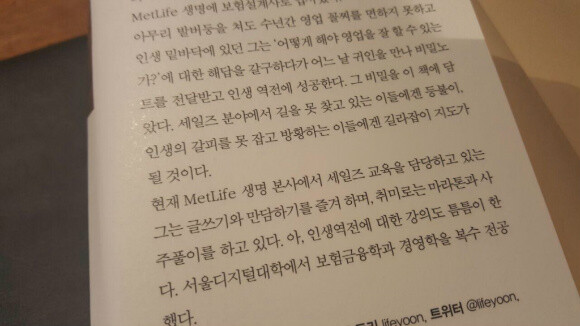 나에게는 구체적으로 참 도움이 된 책이였다. 보험영업이든 영업사원을 하는 사람들이라면