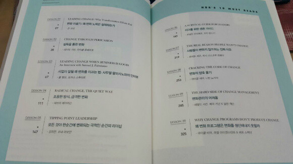 차를 보니 책의 내용이 구성이 참 알차구나라는 생각이 들었다, 변화관리를 하는 방법부터 어려운 이유, 리더에게 필수적으로 필요한 내용까지 게다가 왜 해내지 못하는지 하는 그 부분까지도 다루는 것을 보니 정말 다양한 내용들을 가지고 배우고 얻을 수 있겠구나라는 생각이 들었다. 하나하나 워낙 배우고싶었던 부분이였는데 어디서 부터 시작을 해야하나 싶었는데 이 책을 통해서 열심히 배워야지 하고 책을 읽기시작했다.
