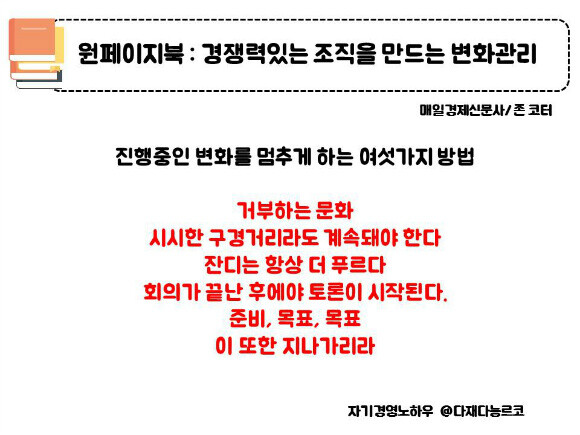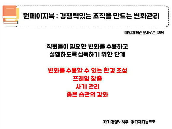 변화관리에 대해 고민할 시간이 없다면, 이 책만 읽어라.
