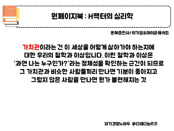 직업중에 심리상담 & 미술치료 & 타로상담을 하는 부분이 있어서 심리학에 평소 관심이 많았다. H팩터라는 요소는 과연 어떤 부분을 말하는 것인지 굉장히 궁금해서 책을 읽기 시작했다. 평소에 그래픽 테라피, 미술치료, 에니어그램 등 다양한 심리도구를 활용하고 책을 통해서 생각을 발전시키거나 대화를 통해서 스스로가 생각할 수 있도록 이끌어주는 상담을 주로 하다보니 심리학 저서를 이렇게 보게 된건 상당히 오랜만이였다. 학술부문의 저술서라서 굉장히 어렵지 않을까? 라는 조금은 두려움도 있었지만 이왕이면 스스로가 하는 일에 분명히 도움이 되지 않을까라는 생각으로 책을 읽기 시작했다.