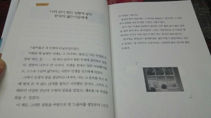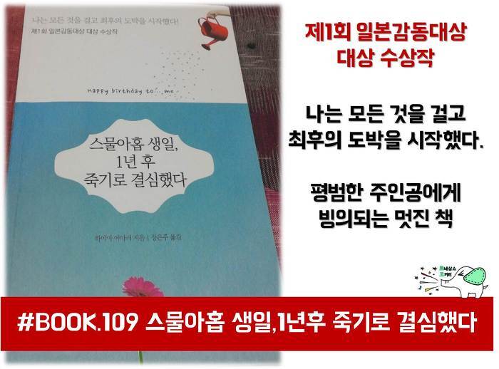 "스ㅡ물아홉 생일, 1년 후 죽기로 결심했다" 라는 제목부터 특이하다라는 것이 첫인상이였다.