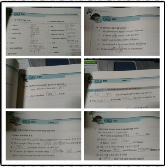 이제 기말고사 준비를 시작한 아이는 나름대로 단어부터 조금씩 문제를 풀어보더라구요.