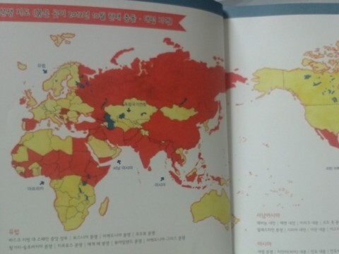 지도의 빨간색처럼 지금도 세계 곳곳에 충돌과 대립지역이라고 합니다. 지도로 보니 참 아직도 많은 지역이 전쟁이 일어나고 있고 아이들이 너무 힘들겠다는 생각을 하게 되네요.
