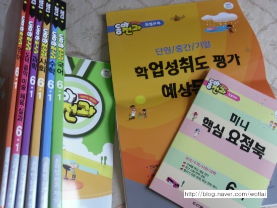 책꽂이에 6학년 교과서와 나라히 꽂혀 있는 동아전과가 너무 보기 좋습니다.