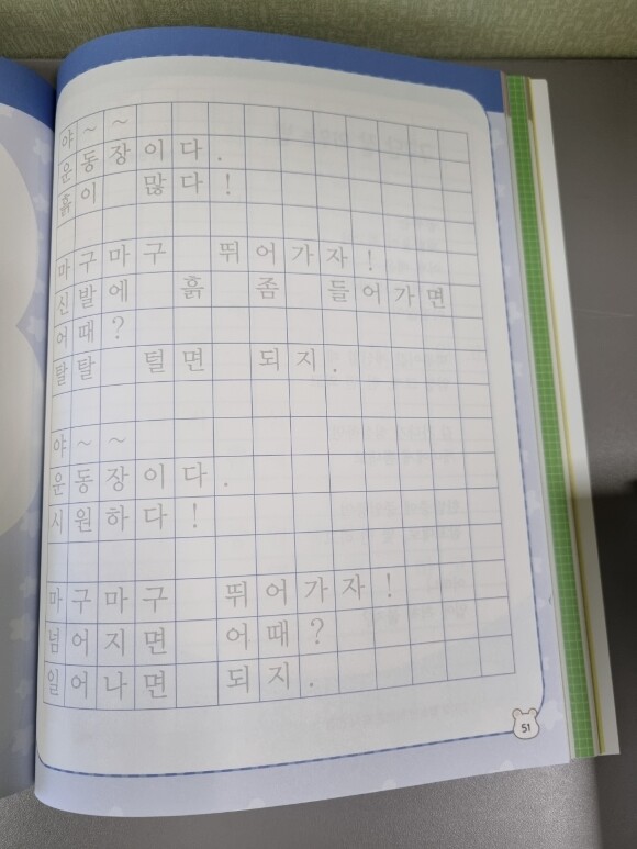 글씨를 연습하는 아이들에게 정말 바른 글씨를 배울수 있도록 배려해 놓았다.