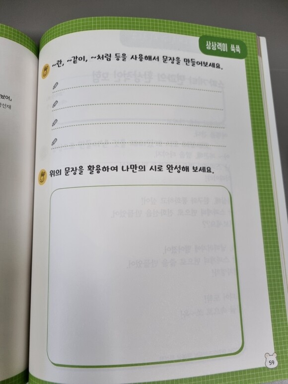 <칸 따라 꿈 따라 동시 따라 쓰기>는 시도 쓰고 상상력도 키울수 있어 매우 좋은 책이다.