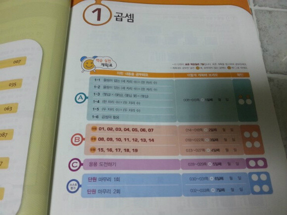 쎈수학의 경우 단원의 맨 앞에는 학습 실천 계획표가 있어요...