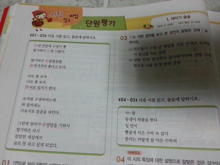 단원평가는 단원 끝날무렵 복습의 개념으로 풀게하려 하고 있어요...