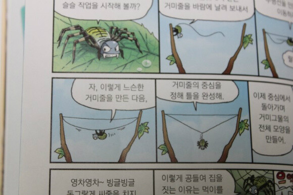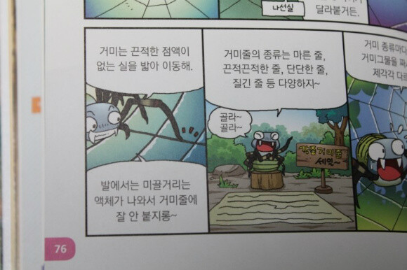 그리고 저 스스로도 왜 거미는 거미줄에 안 붙는지 궁금했는데 이번 만화에서 그 궁금증이 싸악~