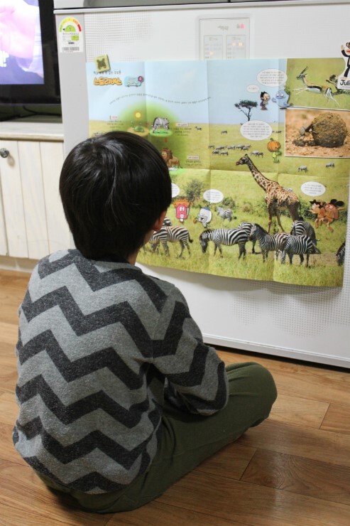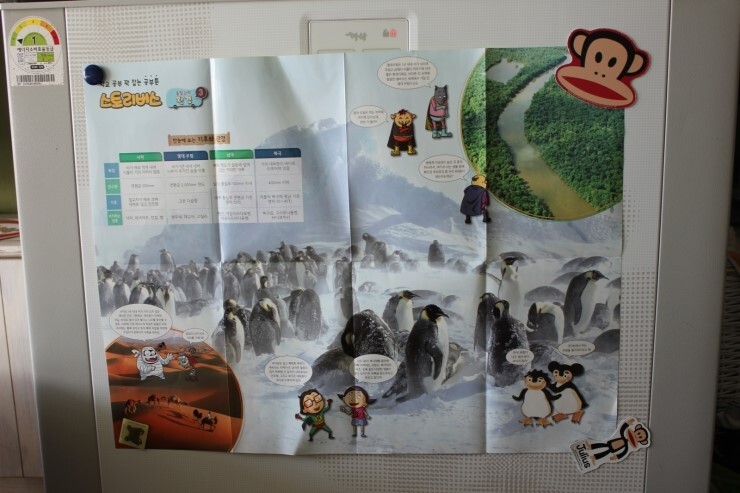 S군네는 TV 바로 옆에 김치 냉장고가 있어서 요 곳에 스토리버스 융합과학의 부록 브로마이드를 붙여 놓는데요.