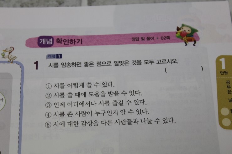 개념 확인에서 그 단원의 내용을 잘 익혔는지 확인하고