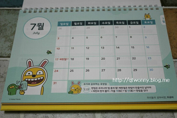 . 카카오프렌즈 캐릭터가 가득, 공부달력(프렌즈 스티커가 들어있어요)!