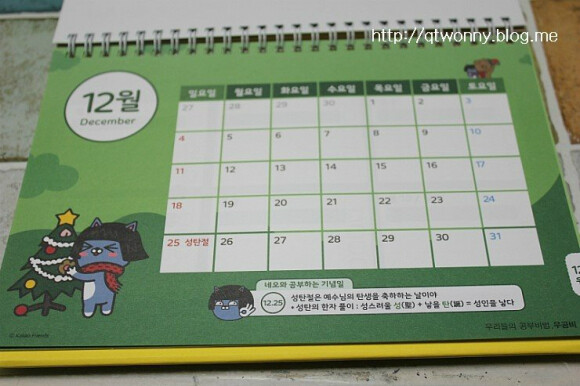 두둥~ 이 귀여운 우공비공부달력~