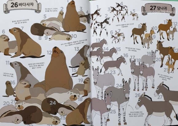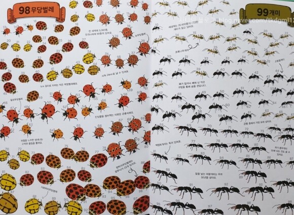 차니는 동물을 진짜 좋아해요 그래서 매일 자연관찰 책과 진짜 진짜 재밌는 그림책 바다,공룡,곤충 시리즈를 매일 봐요ㅎㅎㅎ 가끔은 그만 보면 안되냐고 할 정도에요. 그치만 그 덕에 동물 이름을 엄청 외웠더라고요. 차니는 다른책도 보지만 진짜 진짜 시리즈 제일 좋아해요 그래서 신간 "동물을 세다 보면 숫자가 쏙쏙!"이 기대됬어요. 역시나 책 보자 마자 빨리 보여달라고 성화였어요. 책을 열면 1,2,3,4,5....98,99,100! 지구에 사는 100종이나 되는 전 세계 동물들을 1부터 100까지 볼 수 있어요. 1부터 100마리의 동물마다 1부터 100까지의 숫자가 달려있어요. 단순히 숫자를 읽는 것보다 다양한 동물을 한 마리씩 세다 보면, 더욱 재미있는 숫자 놀이가 가능해요. 올해 차니는 5살이 되어서 그런지 두자릿수 이상에 관심을 가져요. 100이라는 숫자를 알고 난 뒤에는 100개 달라고 말해요. 그치만 정확한 수의 개념은 아직 몰라요. 아이가 관심을 보일때가 적기라고 해서 수놀이판도 집에 있지만 반응이 별로예요. 그런데 "동물을 세다 보면 숫자가 쏙쏙!"그림책은 너무 좋아해요. 숫자만 세어보면 지루할 수 있는데 각 나라별 동물들의 그림과 특징도 만나고 숫자도 같이 소리내어 읽다보니 너무 재밌어해요. 공부하는지 모르는 것 같아요ㅎㅎㅎㅎ 재밌는 숫자놀이 그림책을 보면서 어느새 숫자 개념도 쑥쑥 자라는 것 같아요! 부드러운 그림체로 유아 친구들이 봐도 좋을 것 같아요 유치부 친구들에게는 너무 좋고요 동물을 세다보면 숫자가 쏙쏙! 그림책 추천합니다^^