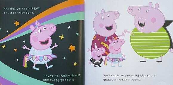조지는 해골 옷을 입고, 페파는 유니콘 옷을 입고 자랑하자