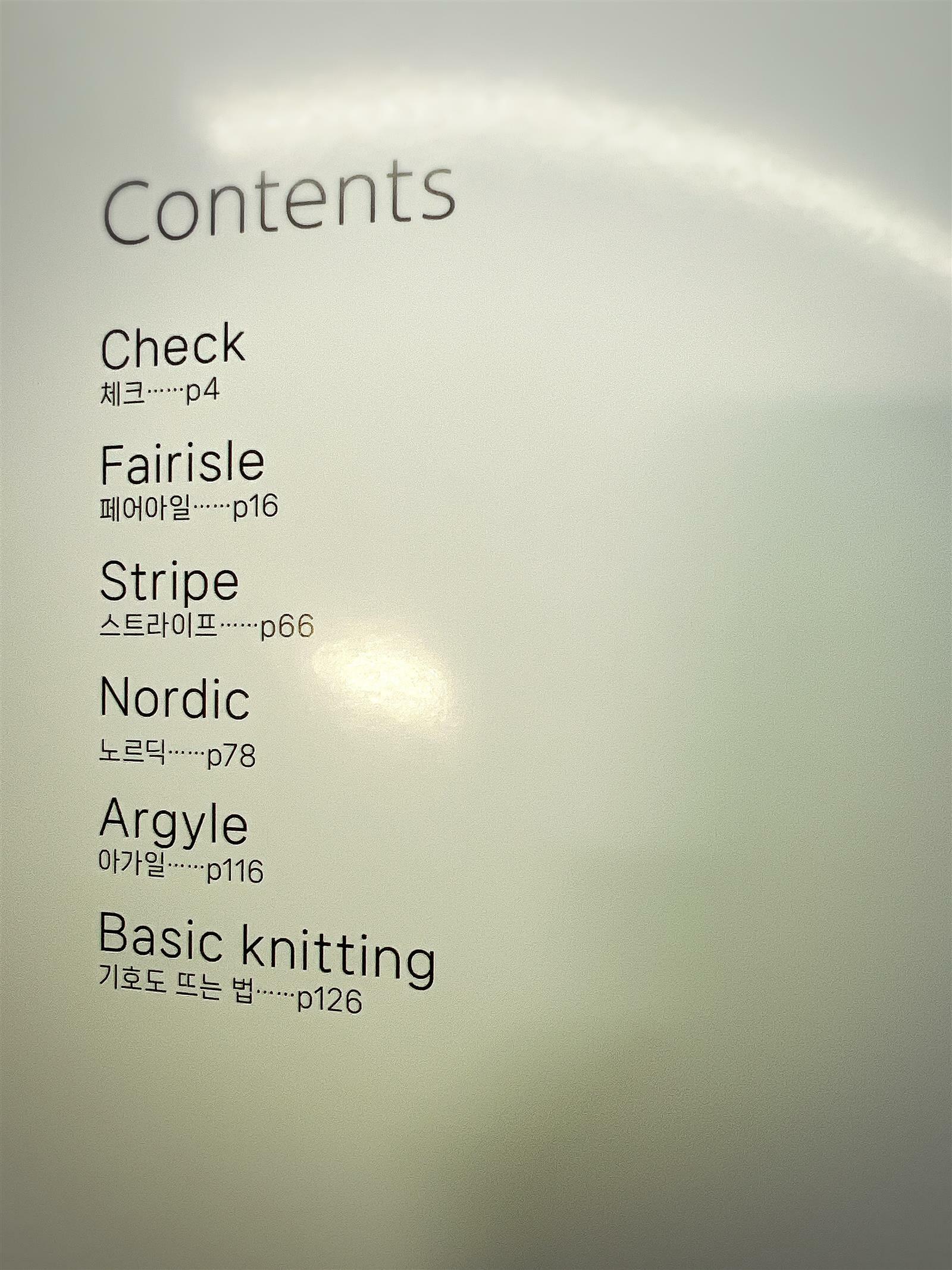 체크, 스트라이프, 노르딕, 아가일 4가지로 나눠어서 배색무늬를 소개하고 있어요.