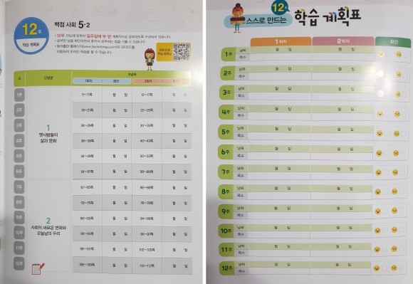 백점 사회를 펴보니 이렇게 12주 학습계획표가 있어요!