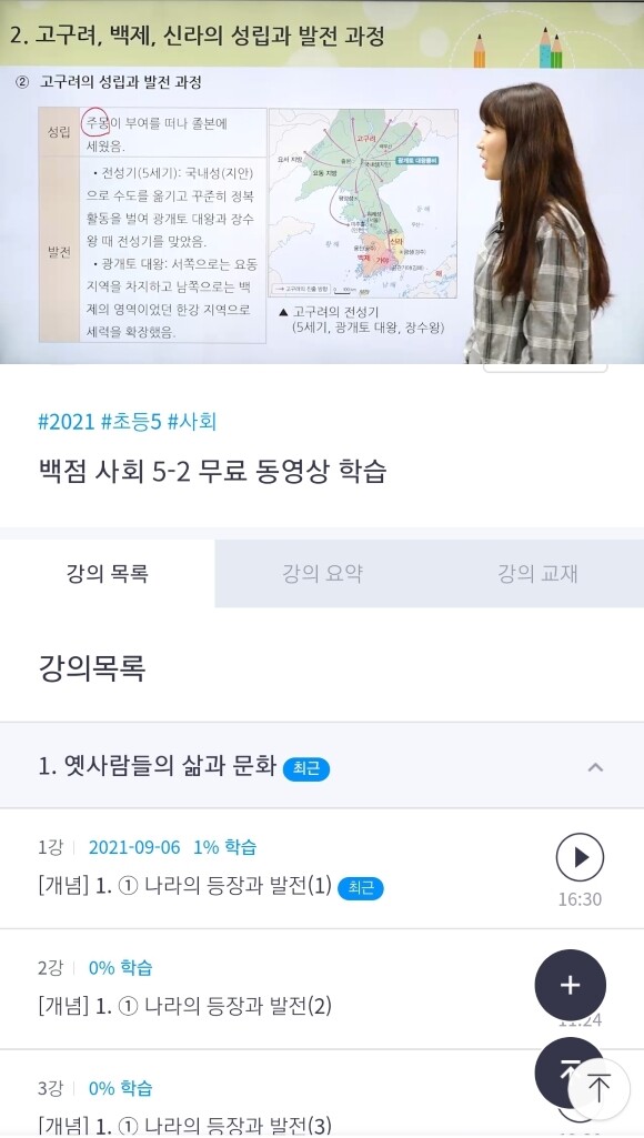 역시 백점 사회에서도 이렇게 개념 동영상 강의를 만나볼 수 있었어요.