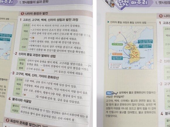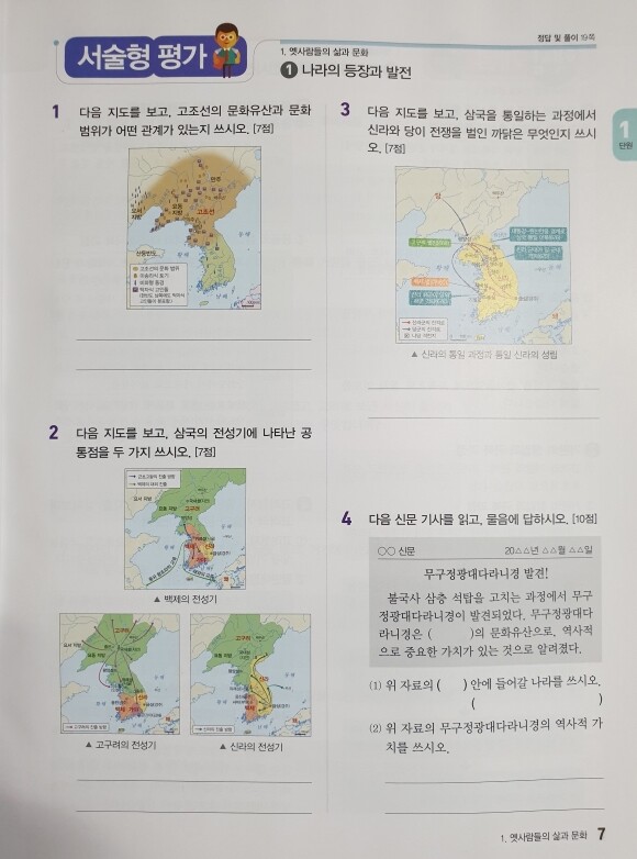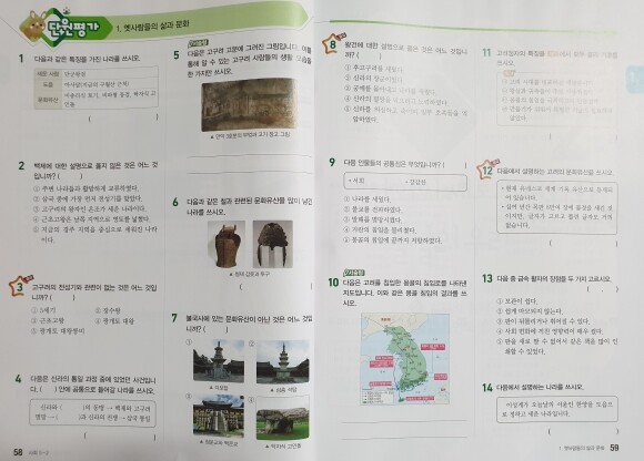 개념북에서 만나봤던 지도와 각종 유물, 문화유산들이 사진과 함께 나와있는데요.