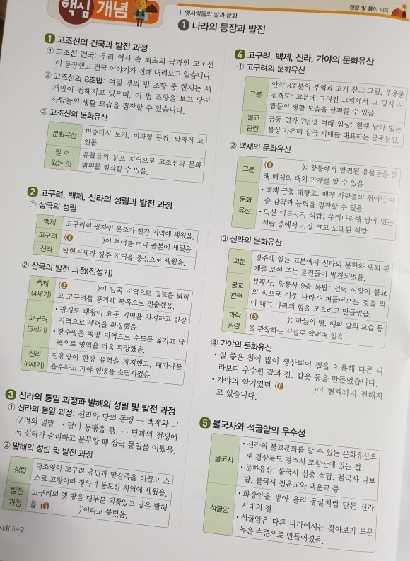 보이시죠? 딸랑 두 단원인데 나라의 등장(고조선)부터 대한민국 정부수립과 6.25전쟁까지..