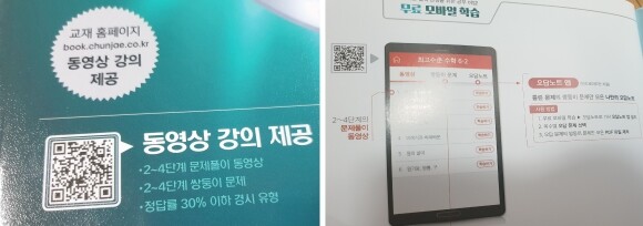 이렇게 교재 표지에 있는 QR을 찍어서 전체 단원 동영상 강의를 볼 수 있기도 해요.