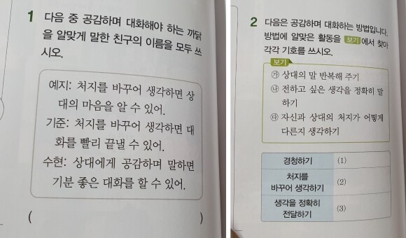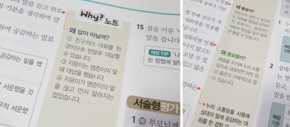 또 실제로 아이들이 보는 수행평가와 비슷한 서술형 평가문제도 따로 만나볼 수 있었어요.