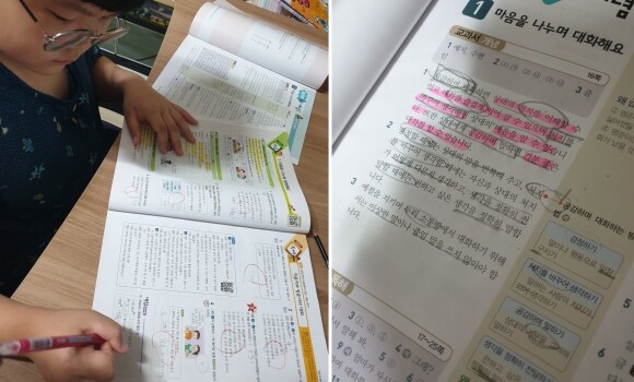 개념학습이 끝나고 나면 본격적인 교과서 독해에 들어가게되요.